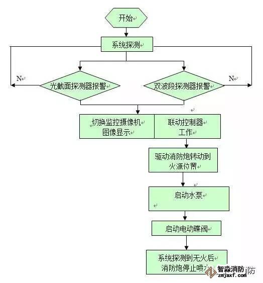 3、自動(dòng)消防炮滅火系統(tǒng)工作流程