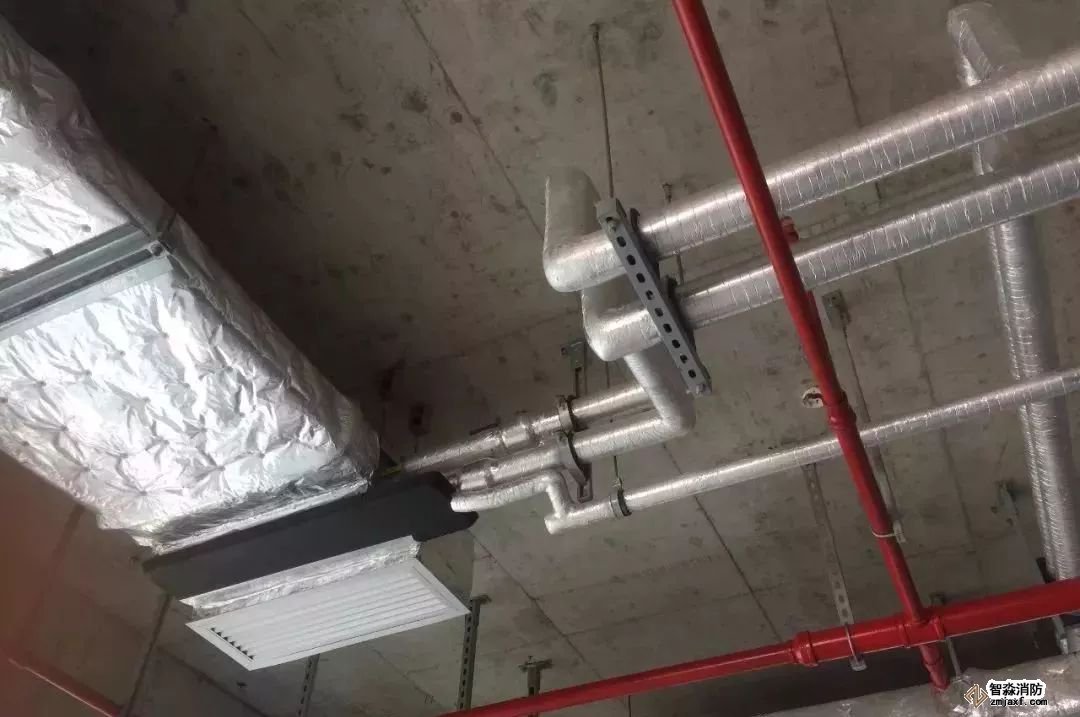空調水管道,坡度正確,支架布置合理,保溫整齊美觀。