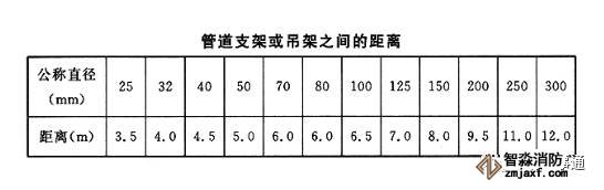 1)管道應固定牢固;管道支架或吊架之間的距離不應大于下表的規定。