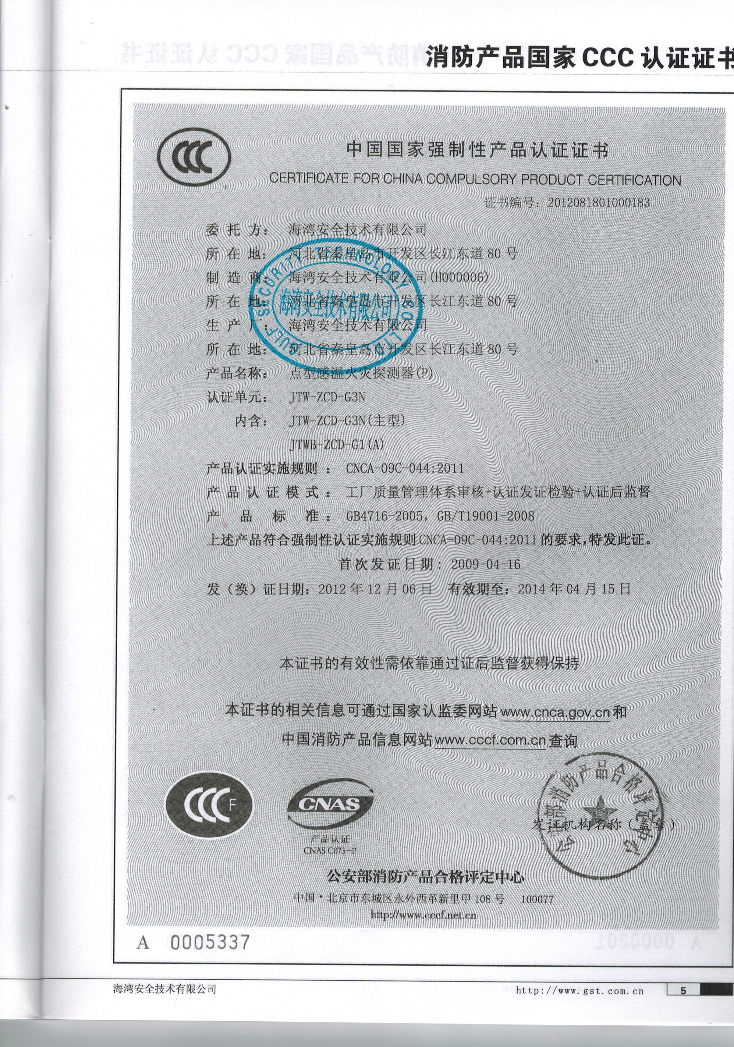 《強制性產品認證實施規則 火災報警產品》CNCA-C18-01:2014中8.1條明確規定:認證證書有效期5年,屆滿可以延續(有效期順延5年),只需獲證后監督結果合格,即可直接換發新證書,不需要重新進行產品檢驗。
