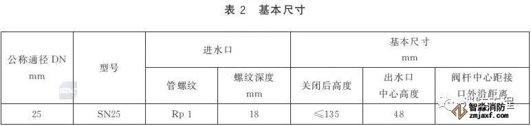 室內消火栓的基本參數見表1。