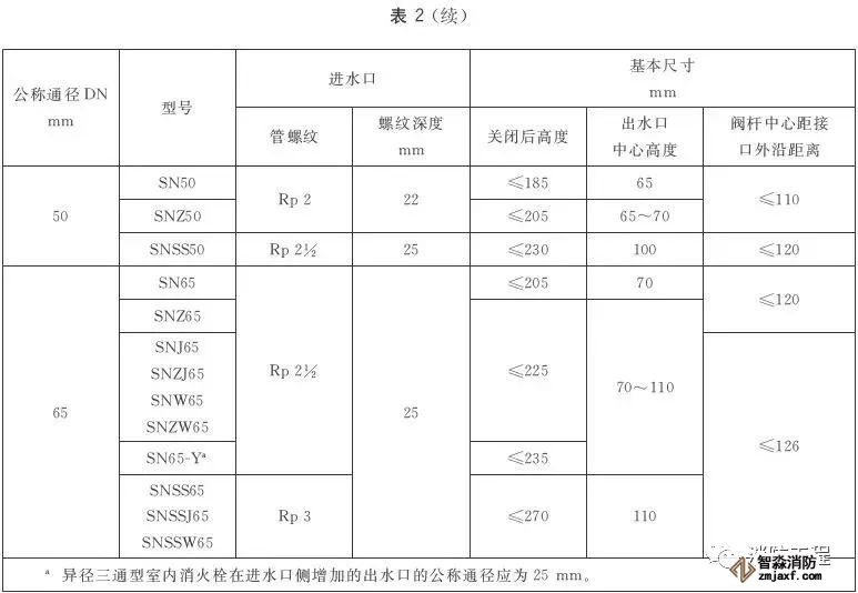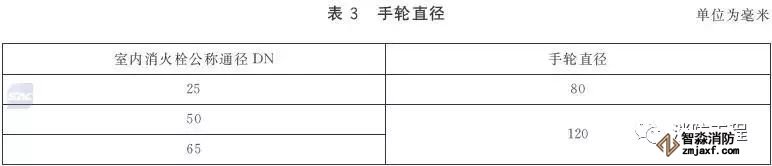 室內消火栓的進水口應為圓柱管螺紋,其進水口的螺紋尺寸應符合表3的規定;閥桿與閥桿螺母應為梯形螺紋。