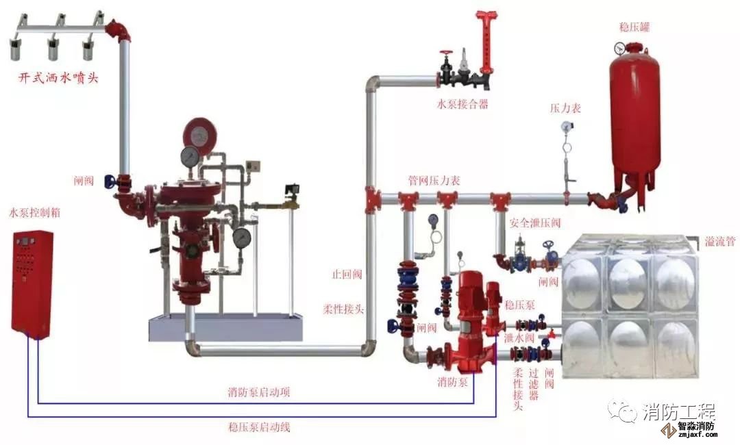 開(kāi)式系統(tǒng)包括雨淋系統(tǒng)、水幕系統(tǒng)。
