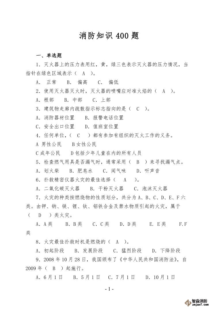 消防知識(shí)400題,用來(lái)考試還是競(jìng)賽?由你定(值得收藏!)