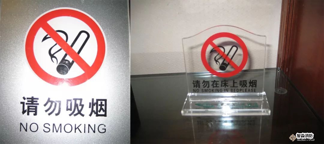 設置要求:1、公眾聚集場所應設置禁煙標牌;2、賓館飯店客房床頭應設置“請勿臥床吸煙”標牌。