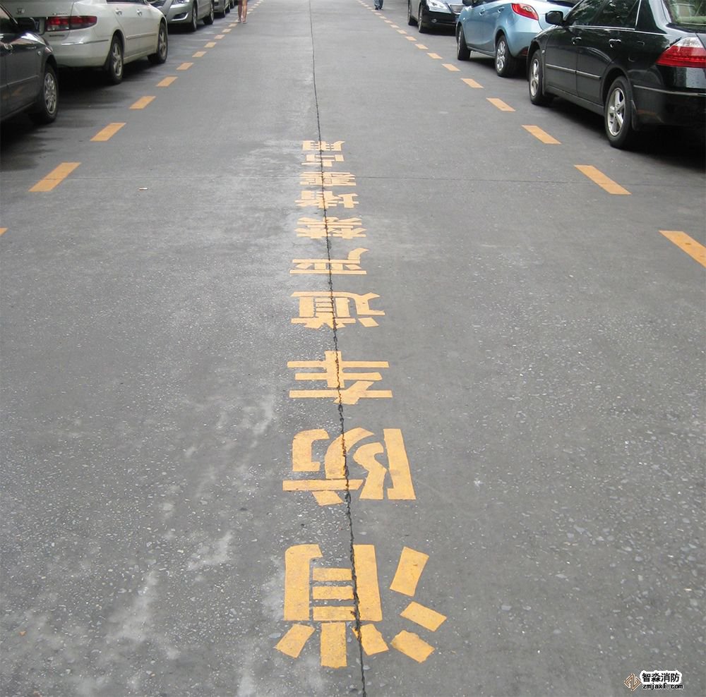 設置要求:在建筑的不同方位的車道上應噴涂“消防車道嚴禁占用”。利用市政道路的可不噴涂。