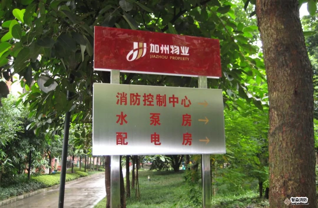 設置要求:住宅小區(廠區、庫區等)內消防控制室、泵房等,在室外應設置的引導標牌。