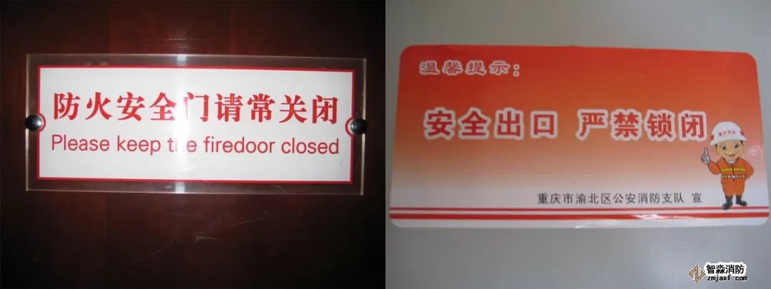 設置要求:在防火門中上部應設置防火門保持常閉標牌,以及禁止占用等警示標語。