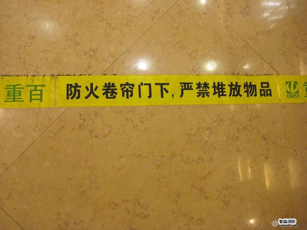 設置要求:在防火卷簾正下方應劃定黃色標識線,并標明防火卷簾下方嚴禁占用提示語。