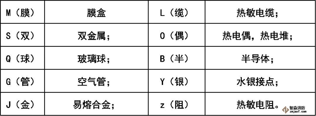 火災(zāi)探測(cè)器分類(lèi)代號(hào):