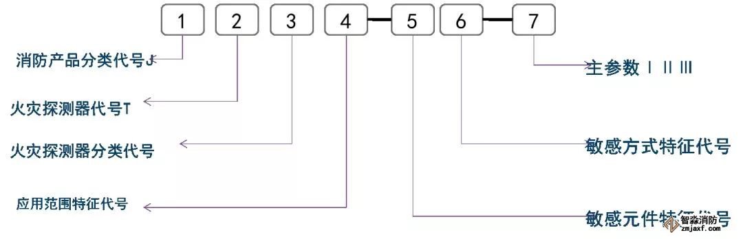 火災(zāi)探測(cè)器產(chǎn)品型號(hào)編制示例: