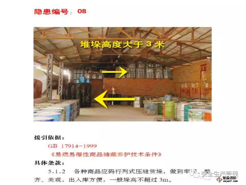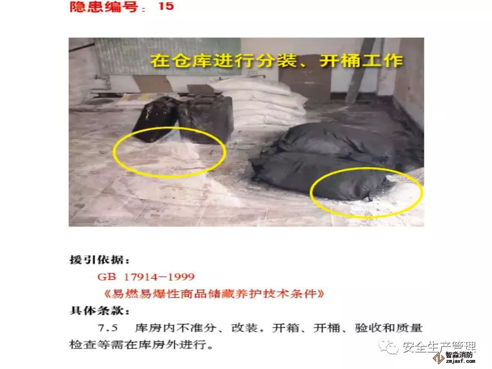 企業(yè)現(xiàn)場(chǎng)管理極其混亂,槽車(chē)運(yùn)輸苯乙烯到廠后自行分裝到塑料大桶(1 噸/桶),在沒(méi)有控溫措施的甲類(lèi)倉(cāng)庫(kù)超量堆垛存放,使用塑料大桶盛裝苯乙烯在包裝物材質(zhì)、容量、儲(chǔ)存條件等均嚴(yán)重違反《工業(yè)用苯乙烯》(GB/T3915-2011)標(biāo)準(zhǔn)規(guī)定。生產(chǎn)車(chē)間內(nèi)大量存放原料及產(chǎn)品,倉(cāng)庫(kù)超量?jī)?chǔ)存問(wèn)題突出。 -