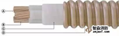 A. 導體:絞合銅導體;B. 絕緣:合成云母帶;C. 填充:無機材料;D. 銅套:縱包焊接并軋紋