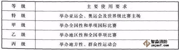 四、體育建筑等級應(yīng)根據(jù)其使用要求分級,且應(yīng)符合表1.0.7規(guī)定。(1.0.7)