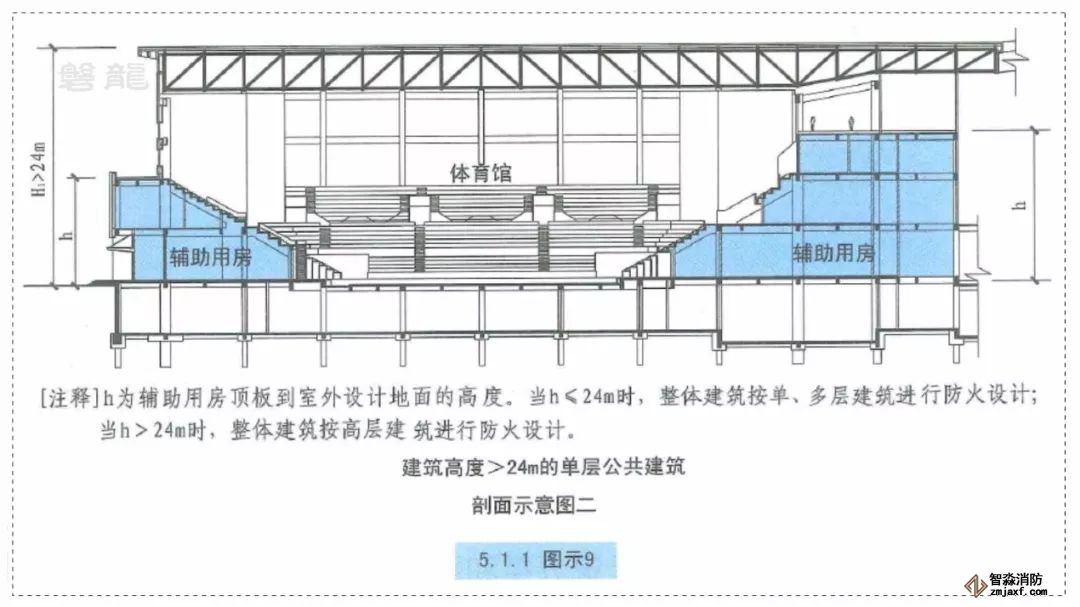 二、建筑高度大于24m的單層體育館,由于具有相對方便的疏散和撲救條件,仍不劃分為高層建筑。