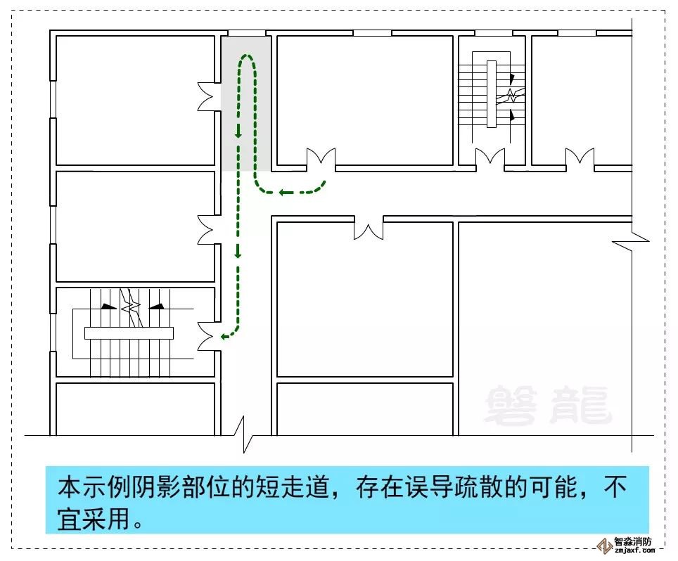 4、沒(méi)有安全出口的回形(環(huán)形)疏散路線(xiàn),不應(yīng)采用。