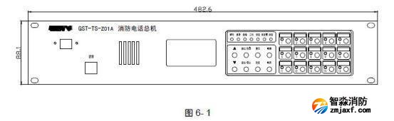 GST-TS-Z01A 型消防電話總機外形尺寸及結構示意圖如圖6-1: