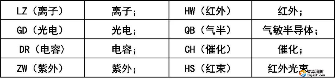 感煙火災探測器、感光大災探測器、 可燃氣體探測器傳感器特征表示法:
