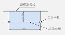 如果感溫電纜敷設在走廊,過道等長條形狀建筑物時,宜用吊線以直線方式在中間敷設。吊線應有拉緊裝置,每隔2m用固定卡具把電纜固定在吊線上。
