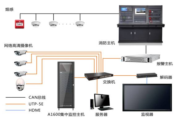 本聯動系統主要由火災自動報警系統、報警主機服務器、視頻監控系統組成。