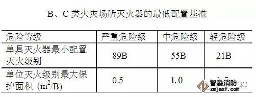 新規(guī)范規(guī)定:B、C類火災(zāi)配置場(chǎng)所的最低配置基準(zhǔn)是單具滅火器最小配置滅火級(jí)別為: 嚴(yán)重危險(xiǎn)級(jí)為89B, 中危險(xiǎn)級(jí)為55B, 輕危險(xiǎn)級(jí)為21B,;