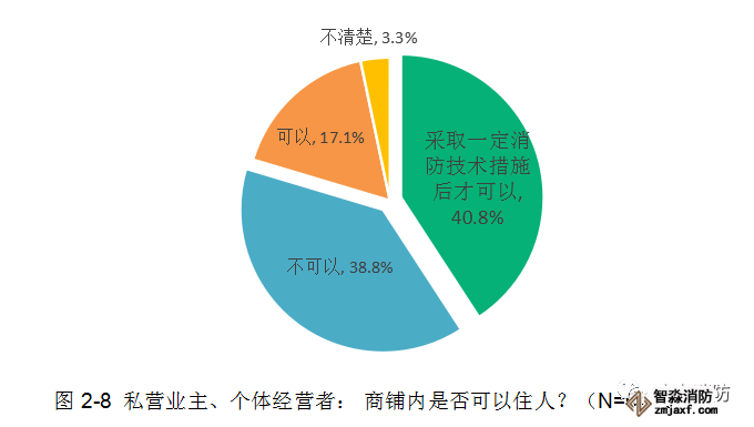 今年,廣東消防針對我省私營業(yè)主和個體經營者展開調查的數據顯示,有79.6%的受訪者對于“商鋪內是否可以住人”這一消防知識有一定正確認知:38.8%的受訪者明確表示商鋪內不可以住人,約40.8%的受訪者表示采取一定消防技術措施后才可以住人,但仍有17.1%的受訪者存在錯誤觀念,認為商鋪內可以直接居住。
