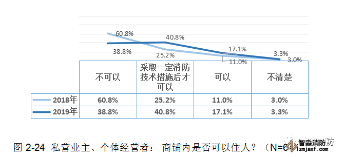 雖然群眾對這一常識有一定的認知,但其知曉率(79.6%)比2018年(86.0%)下降了6.4個百分點!說明私營業(yè)主、個體經營者的消防安全意識有所松懈!