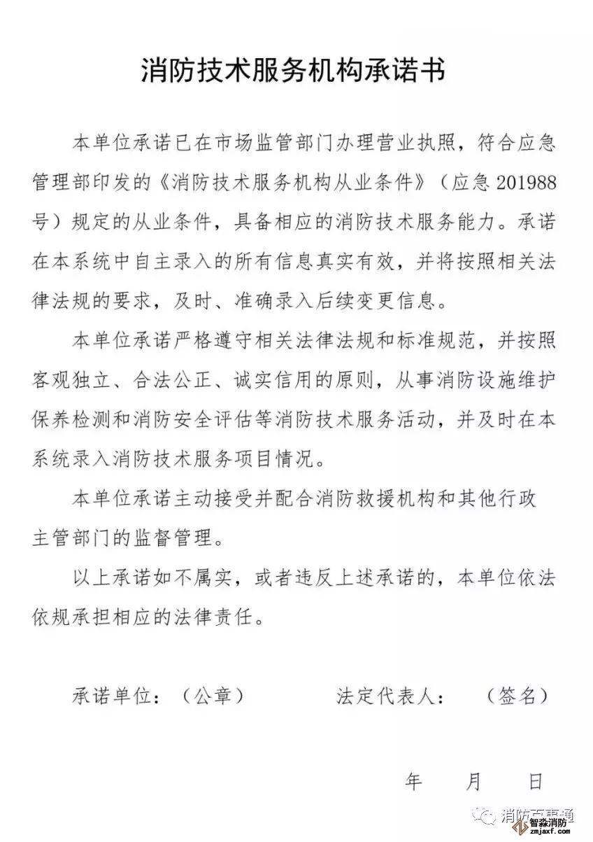 企業法定代表人在《消防技術服務機構從業承諾書》簽字并加蓋本單位公章,上傳本系統。