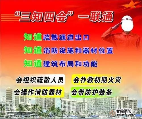 “三知”是指知道消防設施和器材的位置、知道安全通道和出口、知道建筑布局和功能;“四會”是指會疏散逃生、會撲救初期火災、會穿戴防護裝具、會使用消防器材;“一聯通”是指消防支隊(大中隊)與微型消防站、微型消防站與隊員要保持通信聯絡暢通。