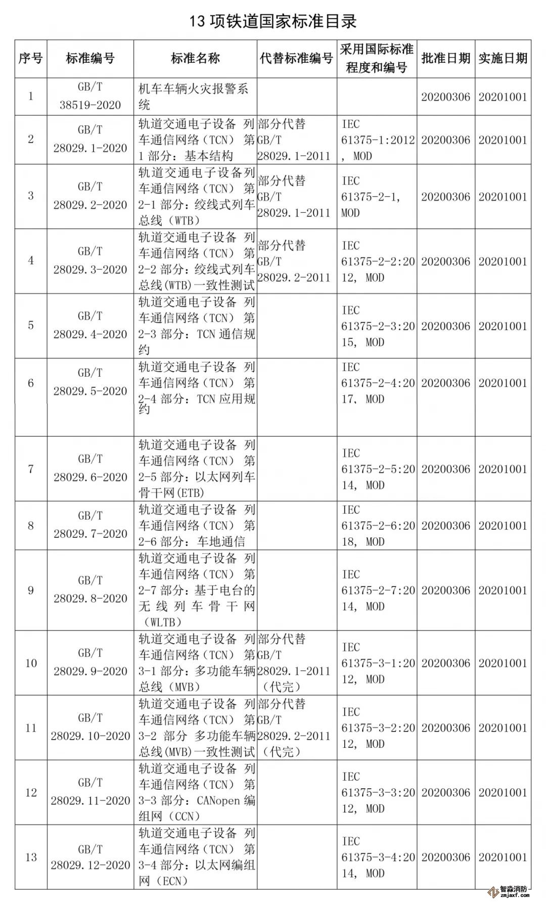 《機(jī)車車輛火災(zāi)報(bào)警系統(tǒng)》等13項(xiàng)鐵道國(guó)家標(biāo)準(zhǔn)正式頒布