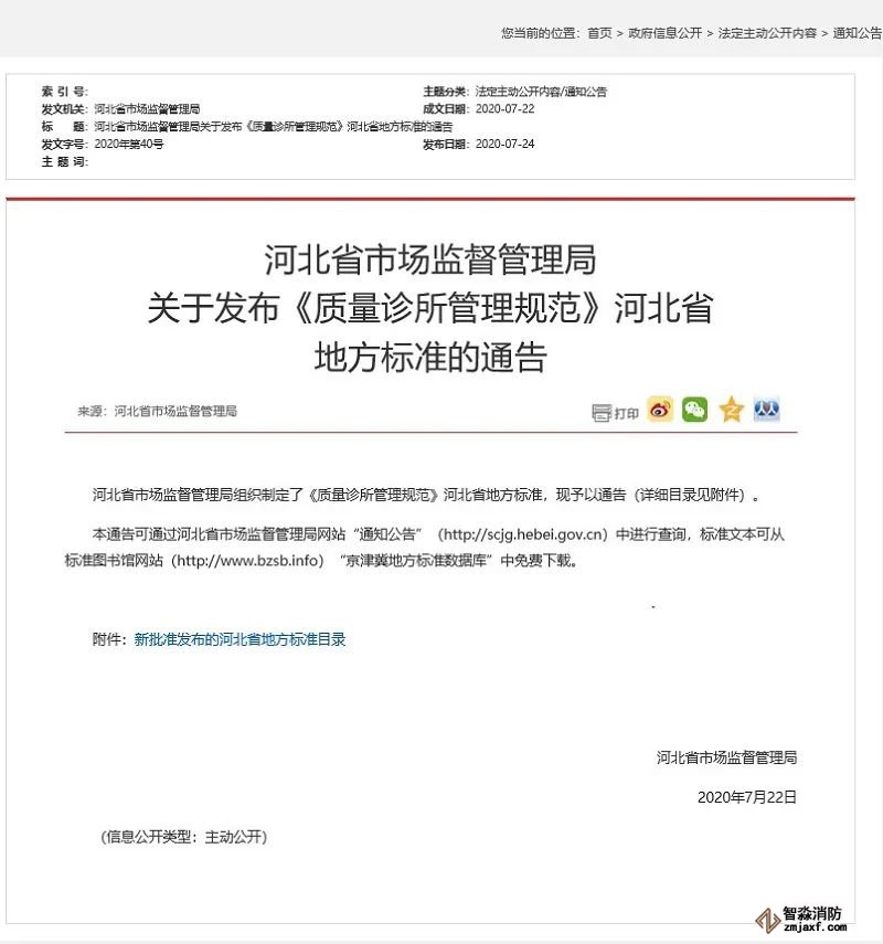 由海灣消防公司擬制的河北省地方標準《質量診所管理規范》近日在河北省市場監管局網站上正式發布,該標準從申請到立項、編寫、征求意見、報批到正式發布共歷時2年半的時間。