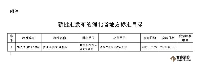 海灣消防公司擬制的河北省地方標準《質量診所管理規范》正式發布