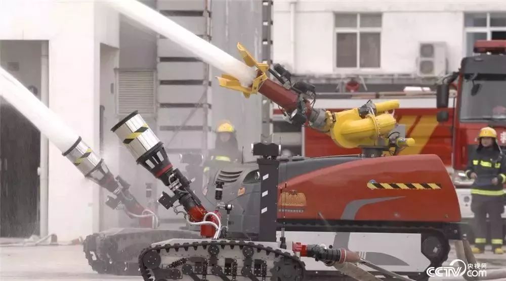 在危化品火災救援現場,高溫、毒煙這些消防員無法靠近的著火區域,消防機器人可以在這些著火區域里工作。小型的消防機器人,向外噴水的最大流量是每秒80升,噴射水柱最遠射程是70米。大型的消防機器人向外噴水的最大流量是每秒180升,噴射水柱最遠射程可以達到100米。這大約相當于2臺舉高噴射消防車的噴水量,能夠更高效地控制住火勢。