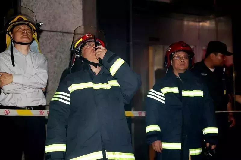 21時(shí)25分許,周詳總隊(duì)長(zhǎng)、梁新國(guó)政委到達(dá)現(xiàn)場(chǎng)。根據(jù)災(zāi)情現(xiàn)狀,周詳總隊(duì)長(zhǎng)要求:組織到場(chǎng)力量全力搜救被困人員;充分利用固定消防設(shè)施進(jìn)行內(nèi)攻滅火堵截;消防車(chē)停靠、連接大樓水泵接合器,確保建筑內(nèi)部消防管網(wǎng)壓力、流量不足情況下,滿(mǎn)足前方滅火需要;調(diào)派70米以上舉高車(chē)到場(chǎng)壓制外墻蔓延火災(zāi);參戰(zhàn)指戰(zhàn)員加強(qiáng)防護(hù)、編組作戰(zhàn),確保不發(fā)生人員傷亡。