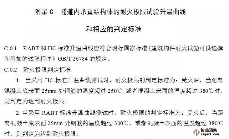 (1)一、二類隧道和通行機(jī)動車的三類隧道,其承重結(jié)構(gòu)體耐火極限的測定應(yīng)符合本規(guī)范附錄C的規(guī)定;
