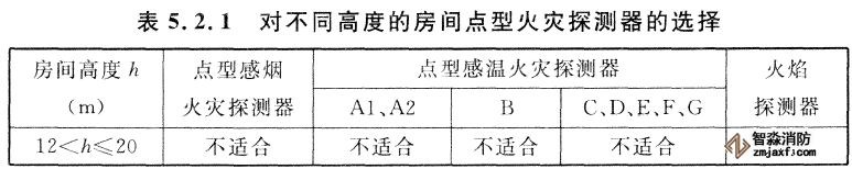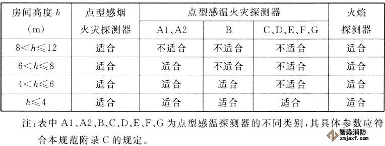 一、對不同高度的房間,可按下表選擇點型火災探測器。