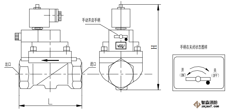 分區(qū)控制閥平時(shí)處于常閉狀態(tài),具有電啟動(dòng)和應(yīng)急手動(dòng)兩種開啟方式。