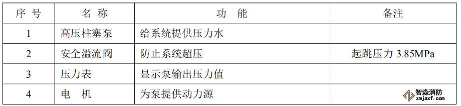 表1-2泵式細(xì)水霧自動(dòng)滅火系統(tǒng)主要參數(shù)