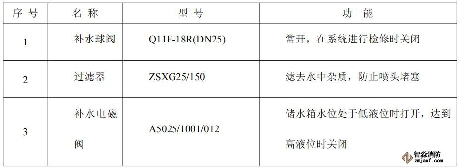 水箱自帶補(bǔ)水電磁閥、連桿浮球液位儀,補(bǔ)水電磁閥由電氣控制柜控制,通過它能自動(dòng)保證水箱中的水位適中,不需要任何人為操作。當(dāng)水箱水位低于低液位時(shí),連桿浮球液位儀輸出相關(guān)信號(hào)給電氣控制柜,由電氣控制柜給出DC24V開閥信號(hào),補(bǔ)水電磁閥開啟,給水箱注水;當(dāng)補(bǔ)水到水箱水位高于高液位時(shí),連桿浮球液位儀輸出相關(guān)信號(hào)給電氣控制柜,由電氣控制柜斷開DC24V開閥信號(hào),補(bǔ)水電磁閥關(guān)閉,補(bǔ)水自動(dòng)完成。