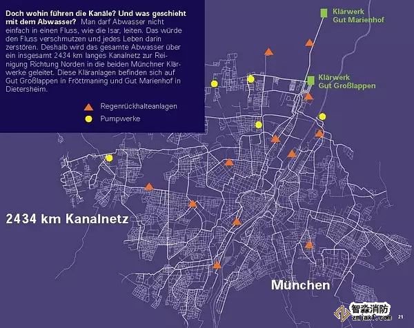 像照片中的那樣,每逢夏天,河邊是市民最愛的去除之一。曬太陽,燒烤,游泳。等等。但你能夠想象么,如此清澈的河水,有相當一部分也是來自于慕尼黑城每天所排進去的生活污水,工業廢水和包括落在地面的雨水。有容乃大的Isar河海涵了這些“污水”而依然美麗的功勞歸功于慕尼黑出色的市政排水系統和它背后的那個管理機構——Münchner Stadtentw?sserung。