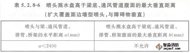 5.2.9 當(dāng)梁、通風(fēng)管道、排管、橋架寬度大于1.2m時(shí),增設(shè)的噴頭應(yīng)安裝在其腹面以下部位。