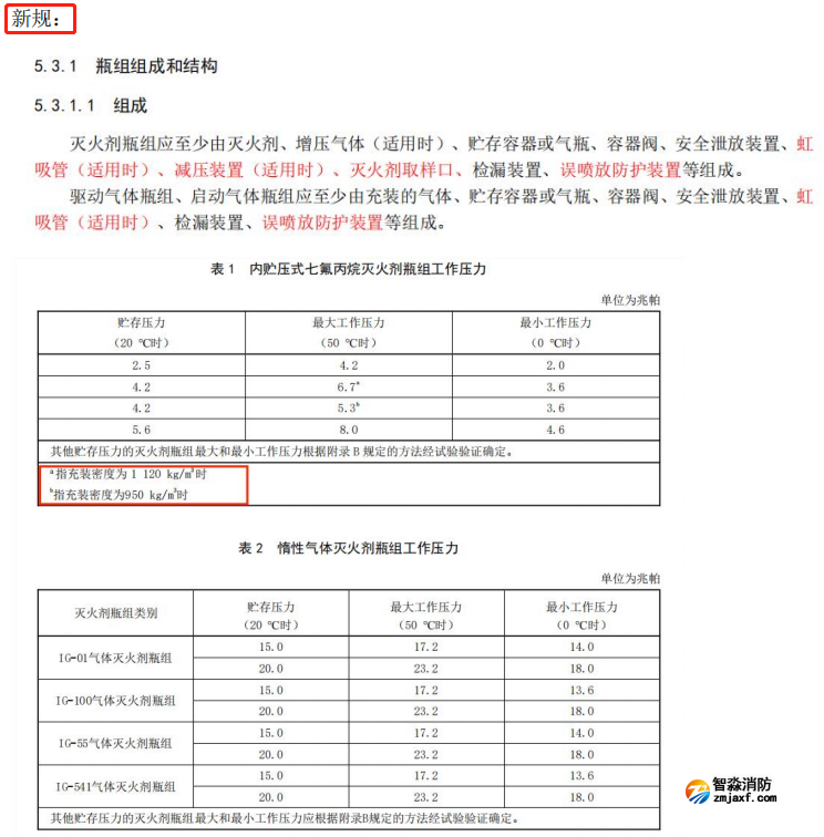 九、增加了瓶組結構要求、外貯壓式滅火劑瓶組的瓶組特性及其試驗方法、瓶組充裝密度和充裝壓力試驗方法、誤噴放防護裝置抗沖擊試驗方法